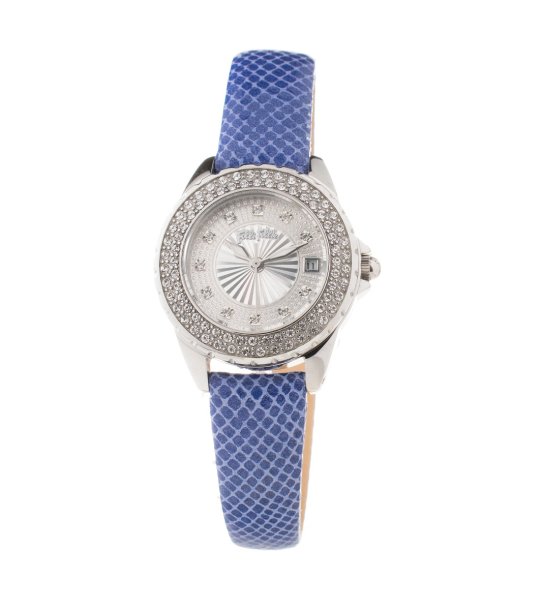 Ceas elegant de damă cu mecanism cu cuarț și afișaj analogic. Design rafinat cu elemente strălucitoare în jurul cadranului.