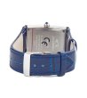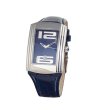 Ceas dreptunghiular cu afișaj analog. Are cifre mari și o dată pe afișaj. Carcasă și curea strălucitoare.