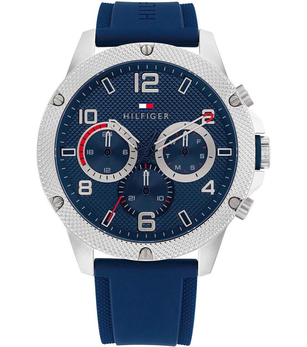 Ceas cu mecanism cu cuarț și afișaj multifuncțional. Diametru afișaj 44 mm, rezistent la presiune până la 5 ATM.