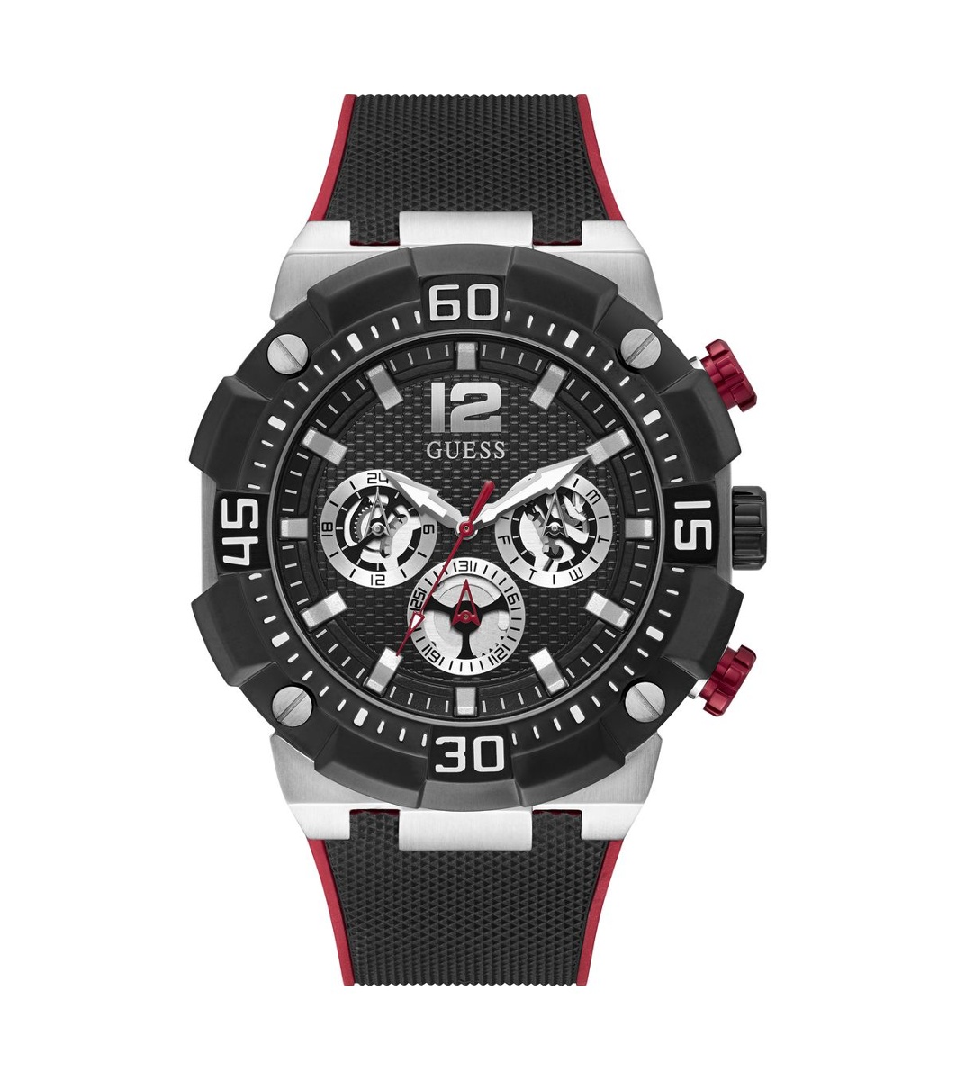Ceas analogic cu cadran rotund și trei cadrane mici pentru funcționalitate suplimentară. Lunetă rotativă cu marcaje de timp. Curea reglabilă cu încuietoare.