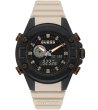 Ceas cu mecanism cu cuarț și afișaj analogic. Carcasa este fabricată dintr-un material durabil. Lanțul este confortabil și durabil. Afișajul este protejat de sticlă minerală. Potrivit pentru o presiune de până la 5 ATM. Diametrul afișajului este de 47 mm. Are funcții precum alarmă și cronometru.