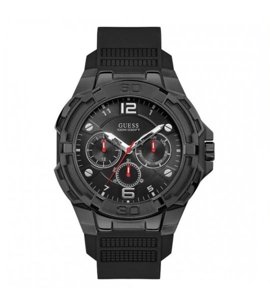 Ceas analogic cu carcasă solidă și trei cadrane suplimentare.