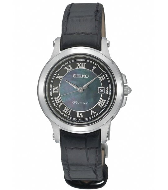 Acest ceas elegant oferă un afișaj analogic clasic cu cifre romane și ace fine. Carcasa are un design curat și prezintă un cadran care include un indicator de dată. Cureaua este realizată cu o textură care adaugă un finisaj elegant aspectului general.