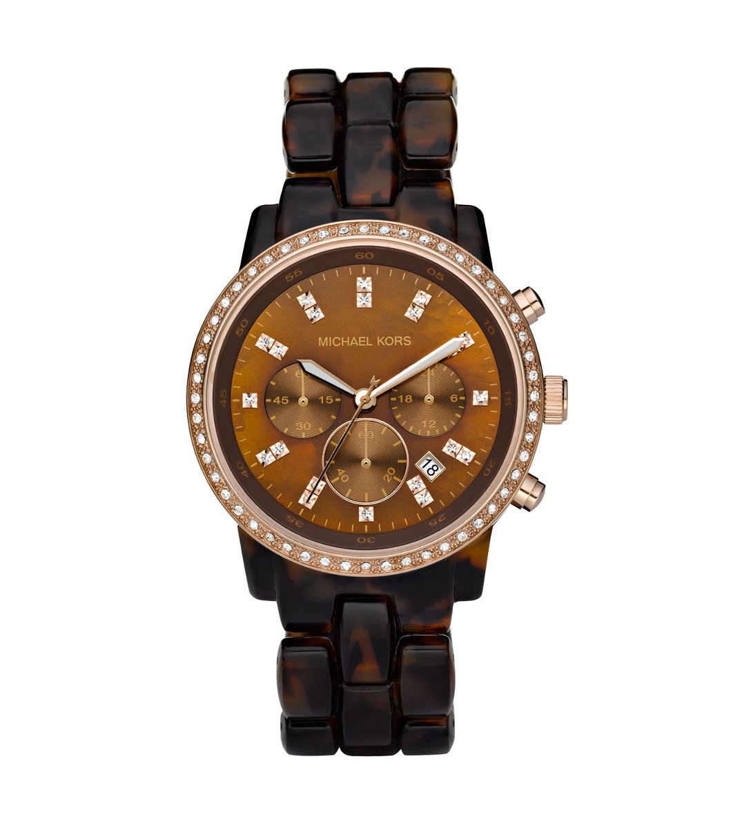Ceas elegant cu afișaj analogic, decorat cu cristale pe marginea cadranului. Lanțul are un design modern, iar afișajul are trei cadrane mici și un indicator de dată.