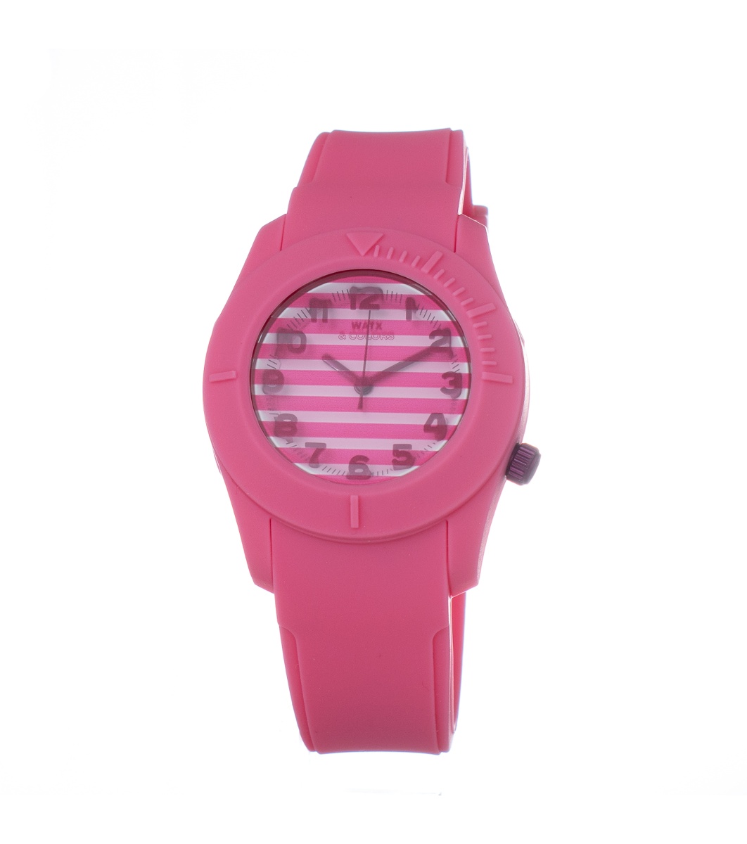 Ceas analogic cu cadran rotund și curele distinctive.