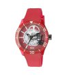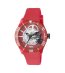 Ceas cu mecanism vizibil și afișaj analogic.