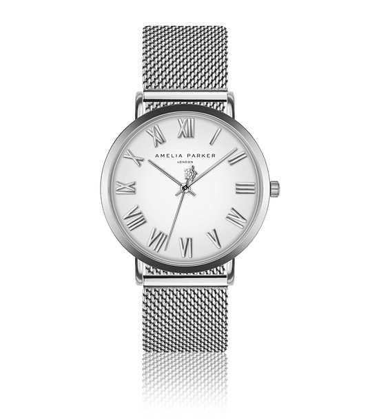 Amelia Parker Ceas argintiu cu cadran alb pentru femei Lala