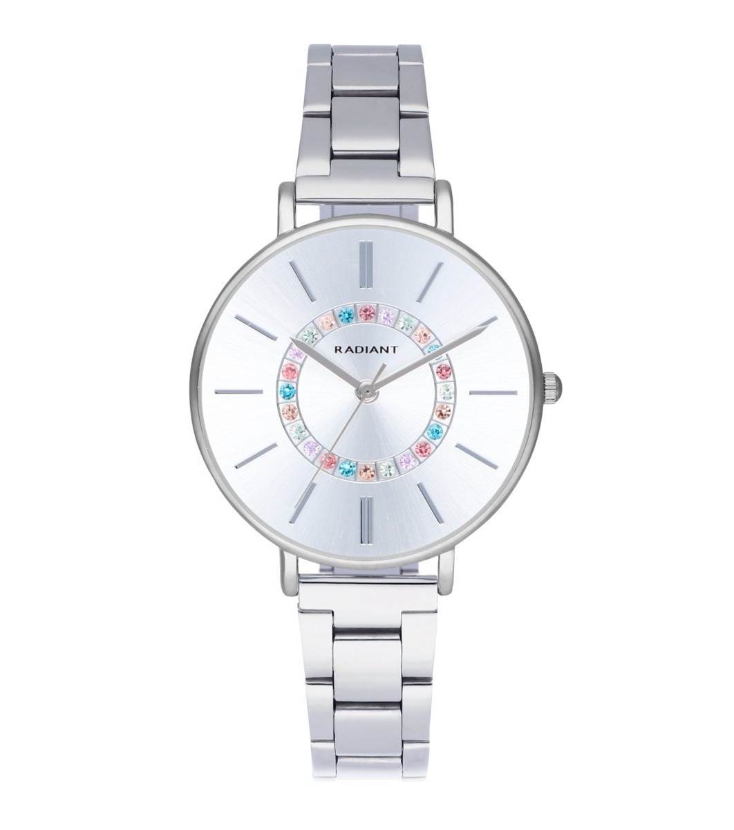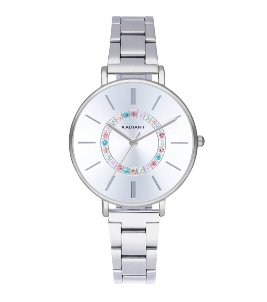 Afișajul este decorat cu cristale colorate, iar carcasa este curată și elegantă.
