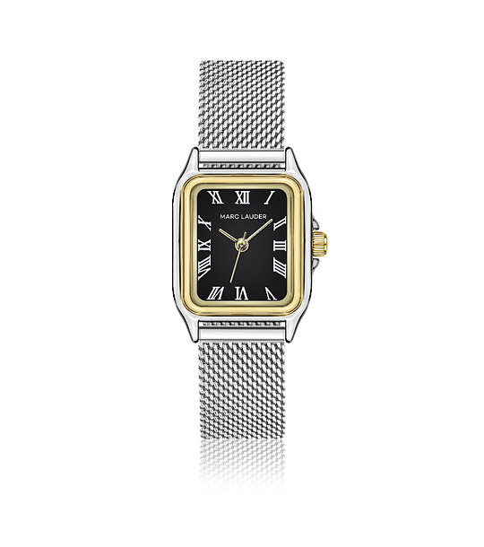 Marc Lauder Ceas argintiu cu lanț metalic Palermo Ceas quartz de damă cu carcasă dreptunghiulară de 23×33 mm și cadran negru.