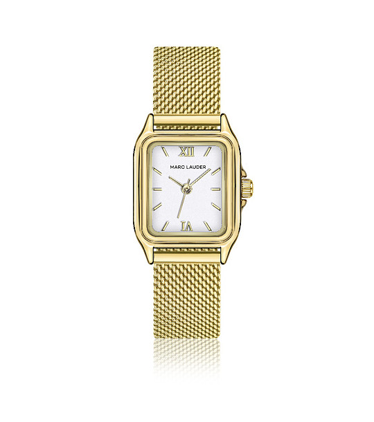 Marc Lauder Ceas auriu cu lanț metalic Antwerp Ceas quartz de damă cu carcasă dreptunghiulară mică și cadran alb.