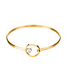 Ceas Élodine cu carcasă aurie și compoziție metalică. Cadran din sidef cu cifre romane și un cristal tăiat simplu, claritate I-3, dimensiune 0,75-0,85 mm, cristal superior colorat.