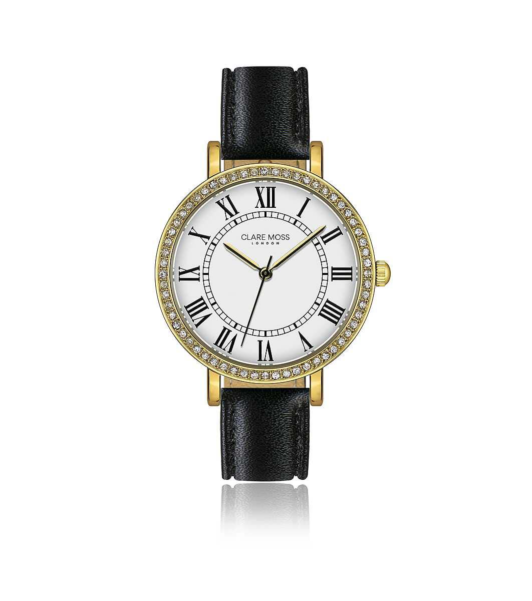 Clare Moss Ceas auriu de dama cu curea din piele neagra London
