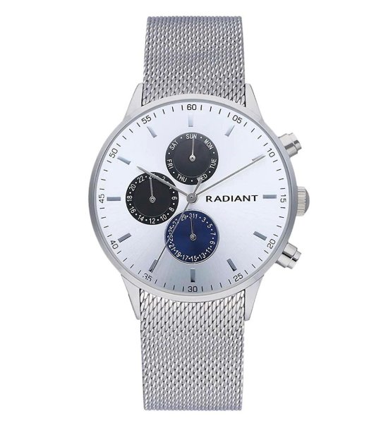 Ceas bărbătesc elegant cu afișaj analog și trei ace. Include trei cadrane mici pentru funcții suplimentare.