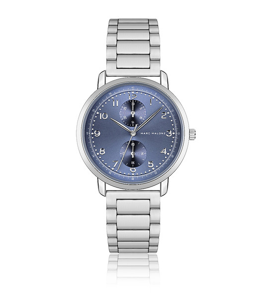 Marc Malone Ceas bărbătesc argintiu cu cadran albastru deschis Afișaj analogic