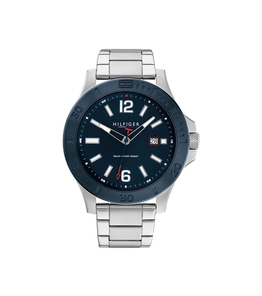 Tommy Hilfiger Ceas bărbătesc argintiu cu cadran albastru închis Ceas bărbătesc
