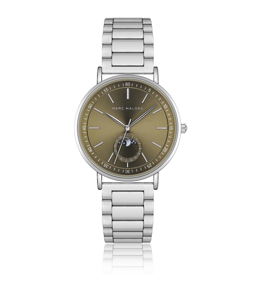 Marc Malone Ceas bărbătesc argintiu cu cadran maro Afișaj analogic