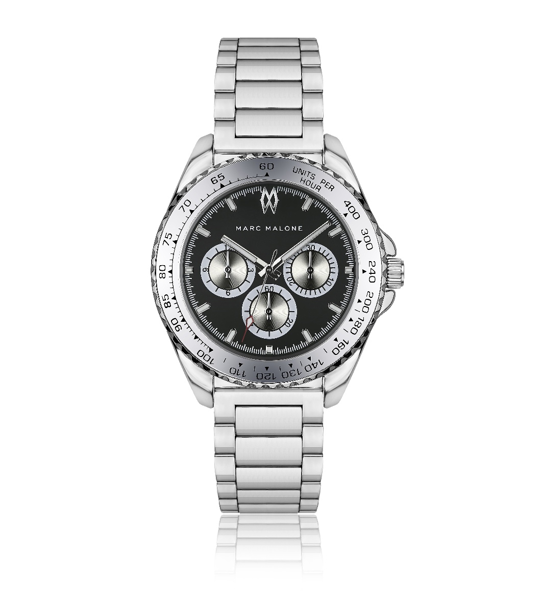 Marc Malone Ceas bărbătesc argintiu cu cadran negru Afișaj analogic