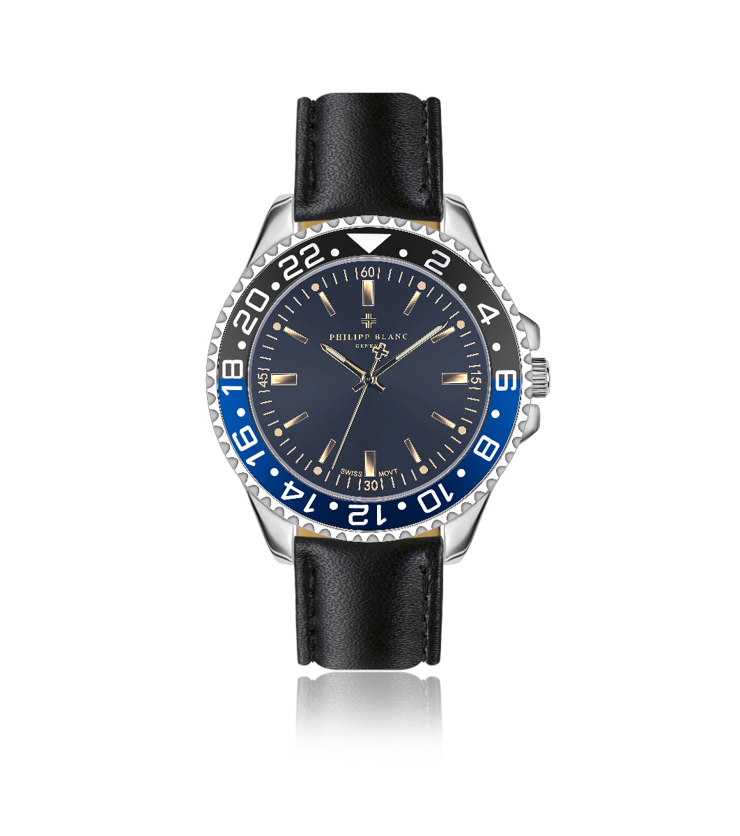 Philipp Blanc Ceas bărbătesc argintiu cu curea din piele neagră Bulle