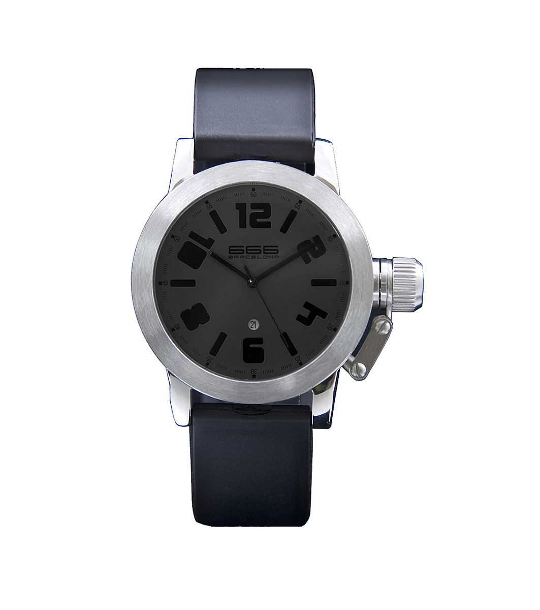 666barcelona Ceas bărbătesc argintiu cu curea neagră Afișaj analogic