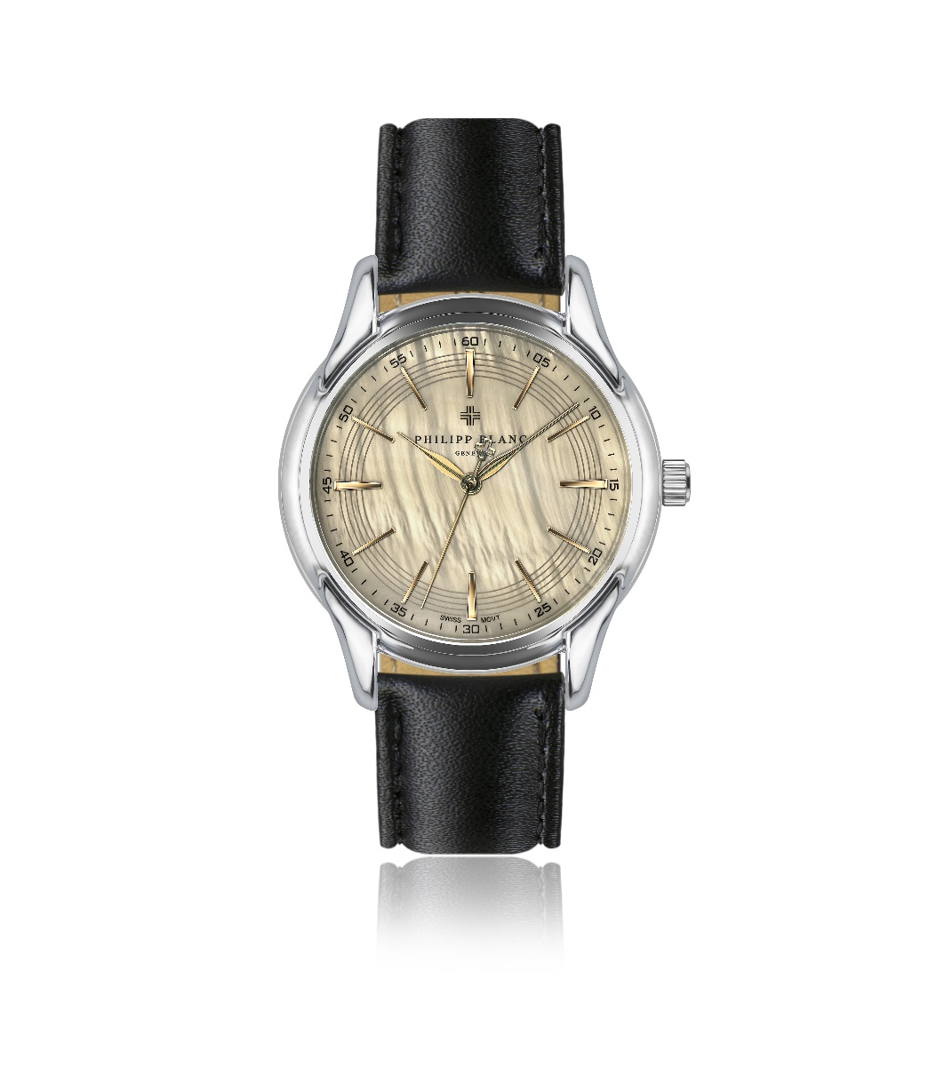 Philipp Blanc Ceas bărbătesc argintiu și negru cu un cadran spectaculos Worb cadran CoAnalog