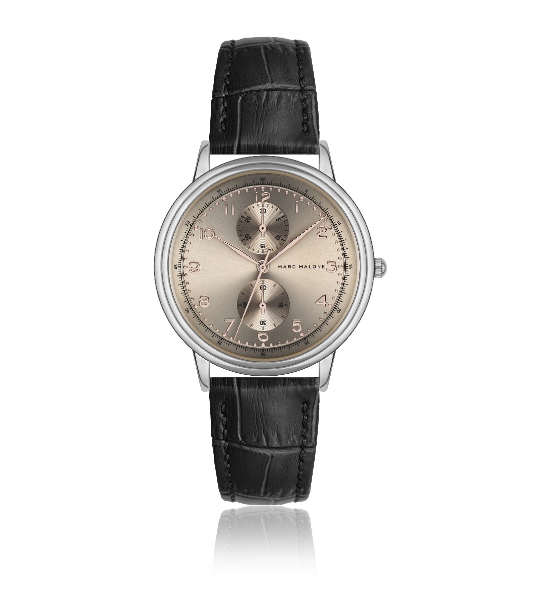Marc Malone Ceas bărbătesc cu carcasă argintie și cadran auriu-roz Afișaj analogic
