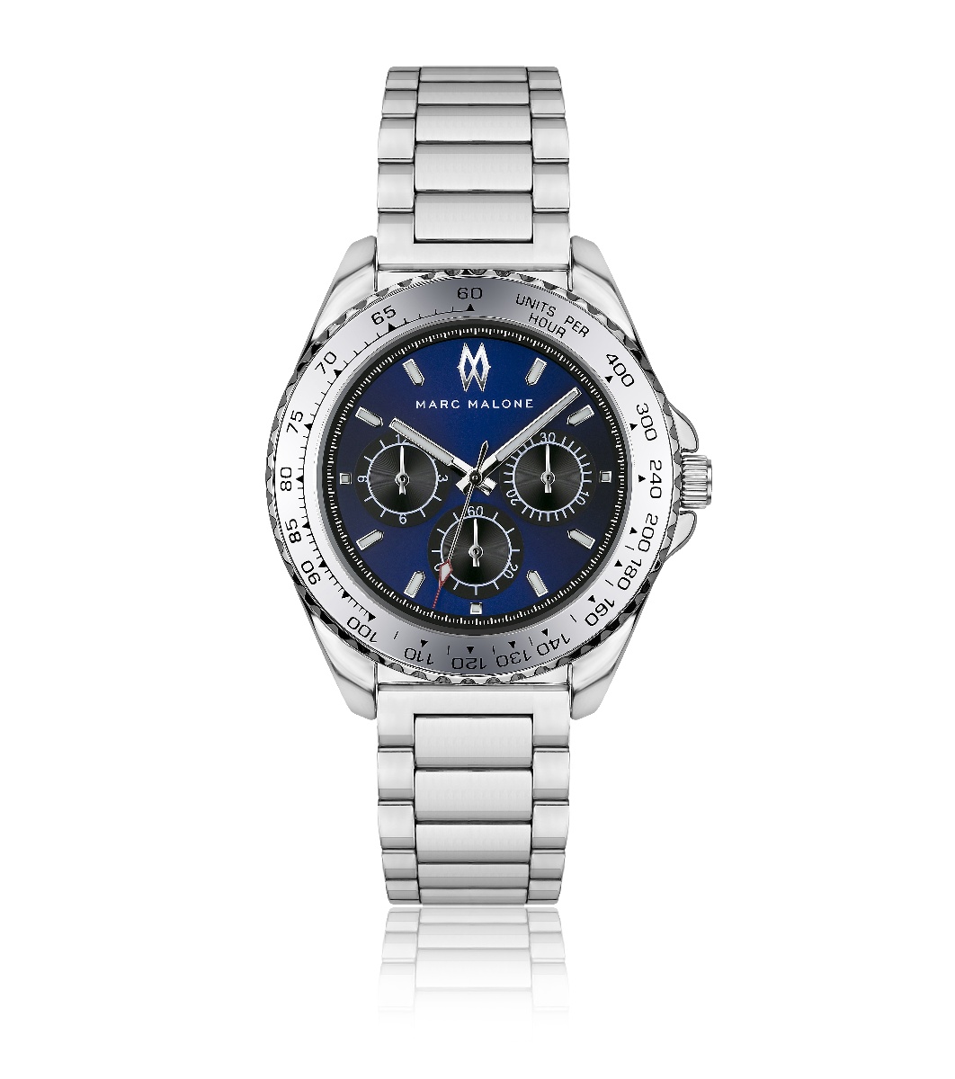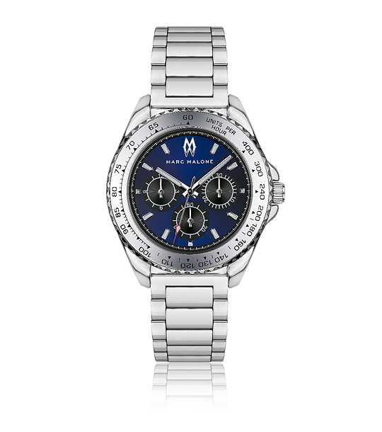 Marc Malone Ceas bărbătesc cu cuarț argintiu cu cadran albastru Afișaj analogic