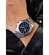 Ceas bărbătesc cu cuarț argintiu cu cadran albastru