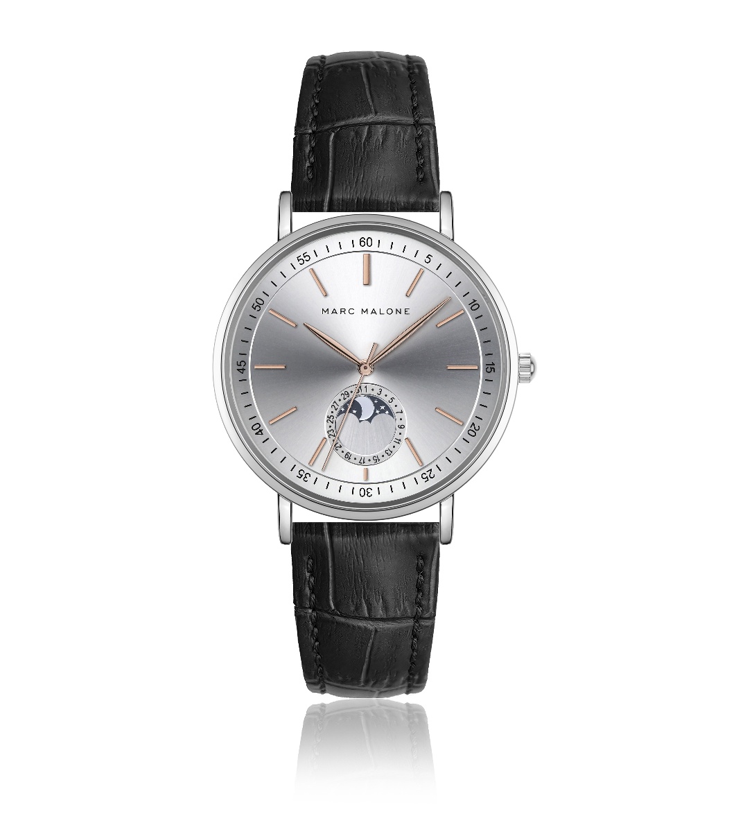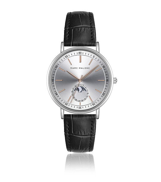Marc Malone Ceas bărbătesc cu cuarț argintiu cu curea din piele neagră Afișaj analogic