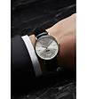 Ceas bărbătesc cu cuarț argintiu cu curea din piele neagră
