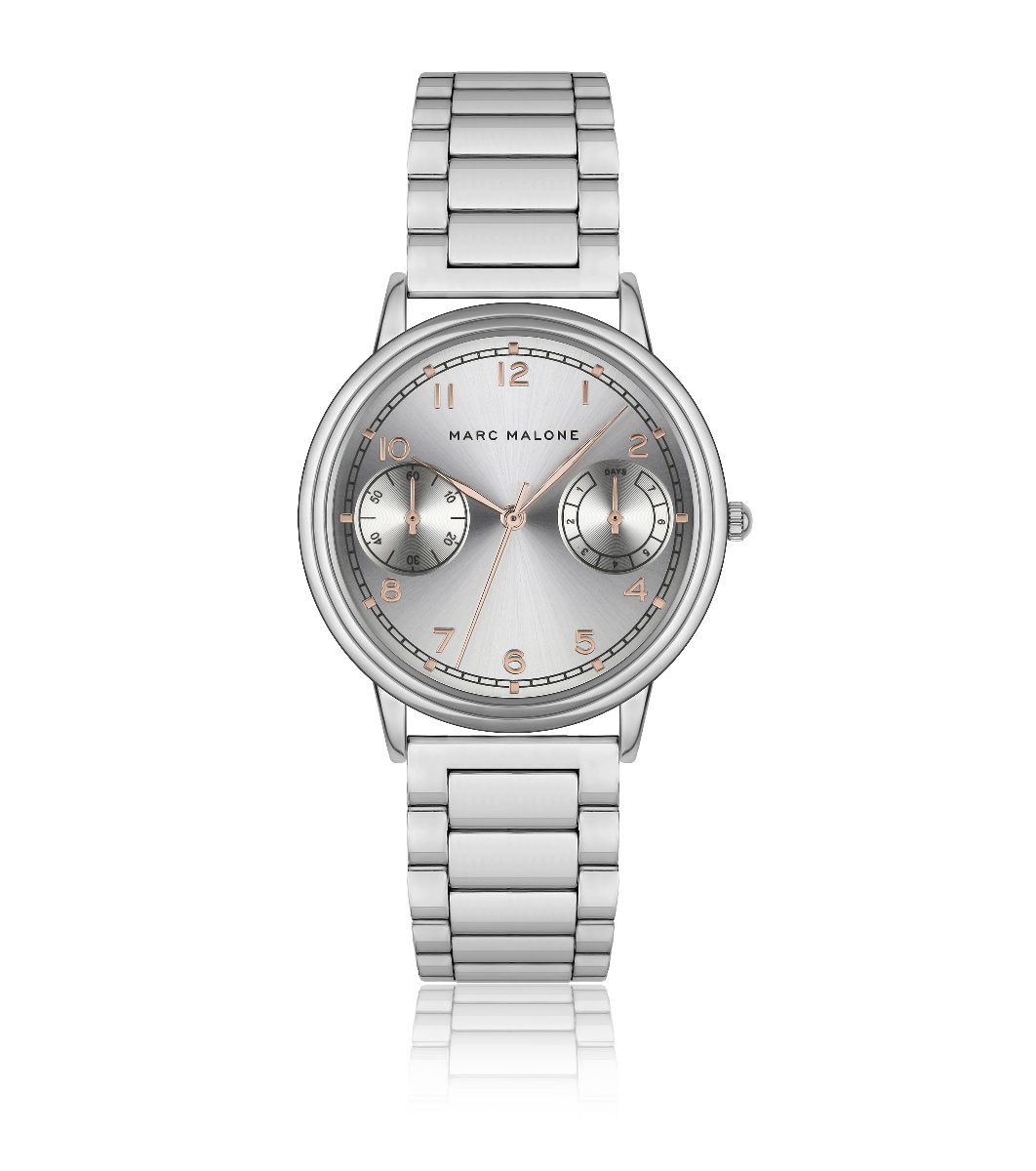 Marc Malone Ceas bărbătesc cu cuarț argintiu cu lanț metalic Afișaj analogic