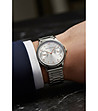 Ceas bărbătesc cu cuarț argintiu cu lanț metalic