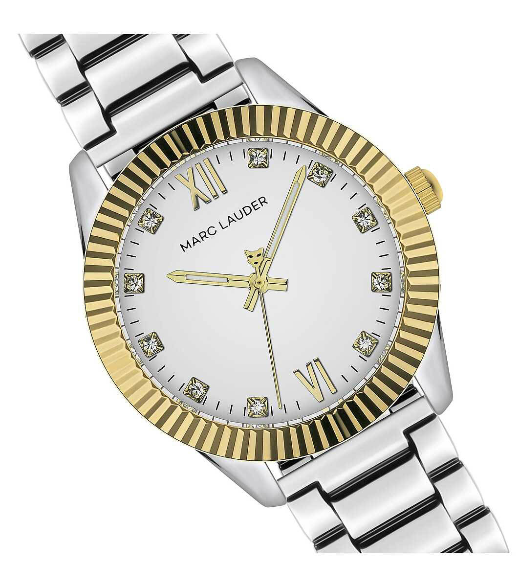 Marc Lauder Ceas bărbătesc din argintiu și alb cu lunetă aurie Atena Cadran analog cu pietre de zirconiu