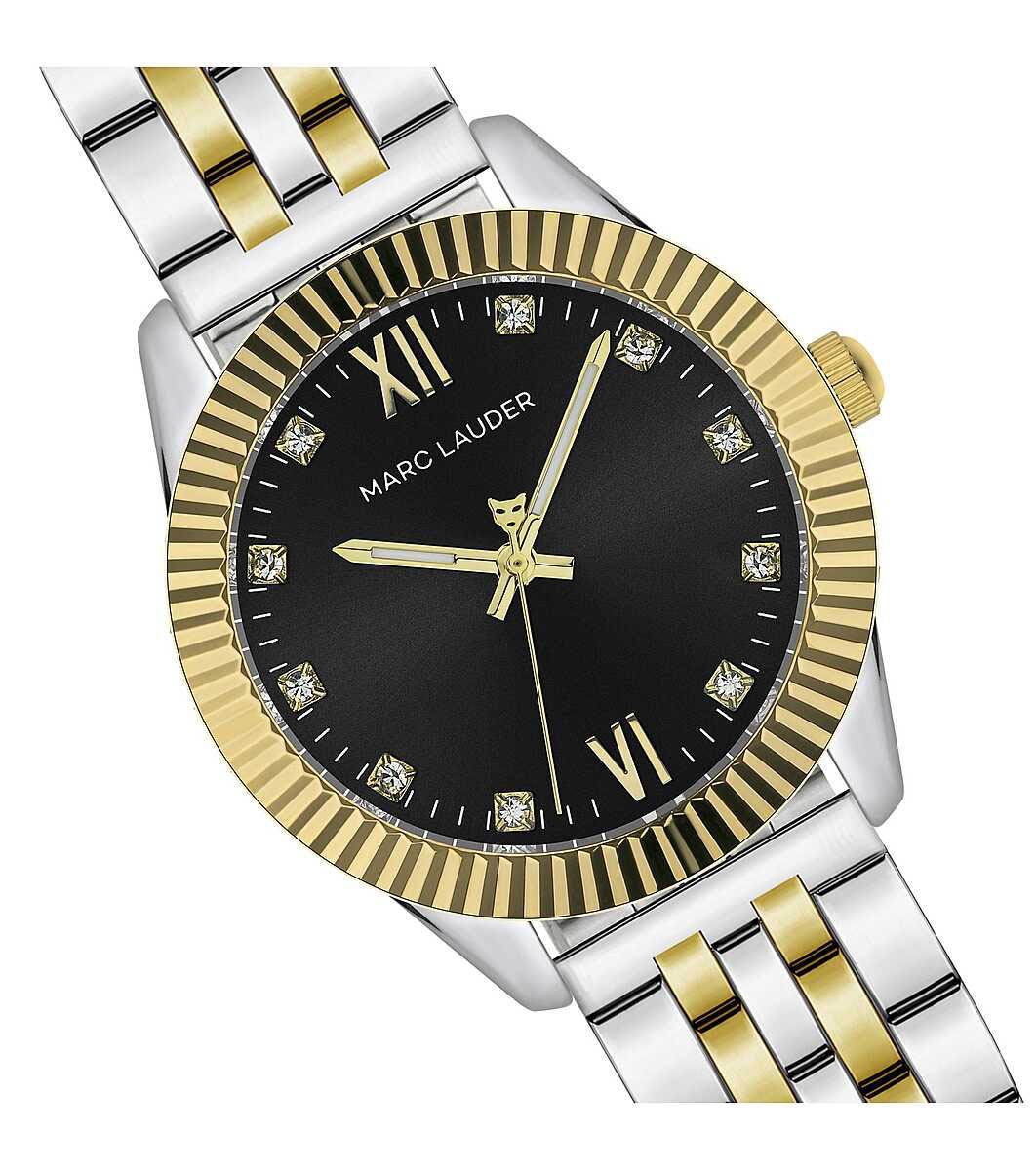 Marc Lauder Ceas bărbătesc din aur și argint cu cadran negru Edinburgh Black Cadran analog cu pietre de zirconiu