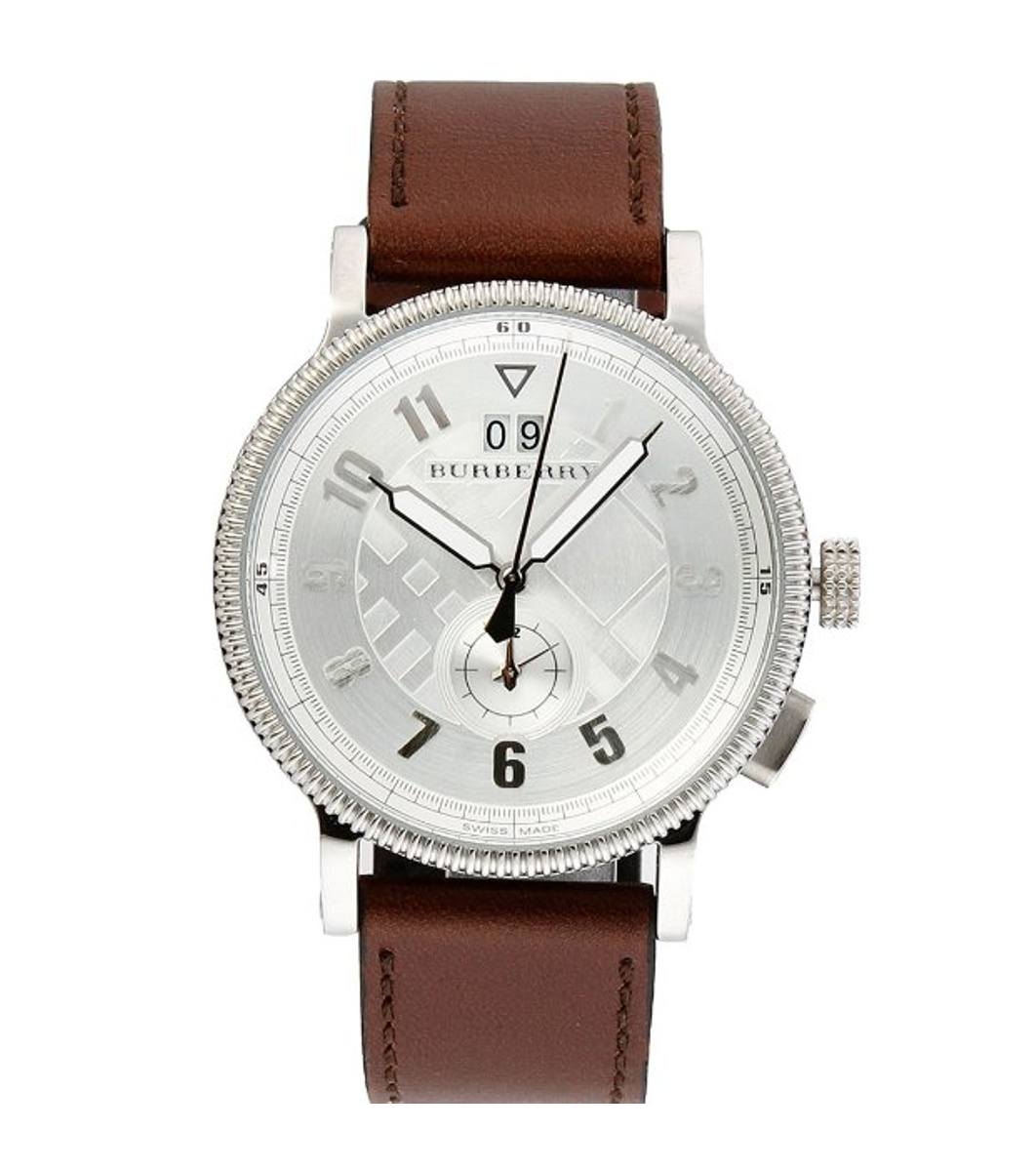 Burberry Ceas bărbătesc din piele maro cu afișaj argintiu Mecanism: cuarț