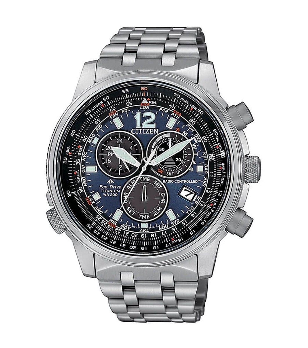 Ceas bărbătesc elegant, cu afișaj analogic și funcții cronograf.