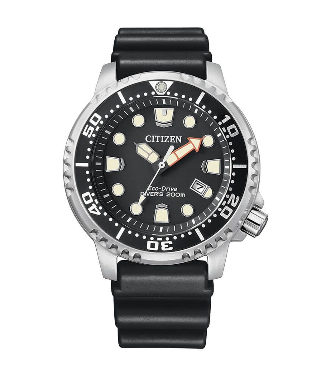 Ceas analogic cu afișaj clar și lunetă rotativă.