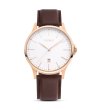 Ceas cu afișaj analogic și design clasic.