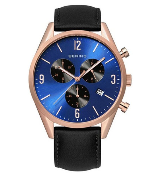 Ceas cu cuarț cu afișaj analogic și funcții cronograf.