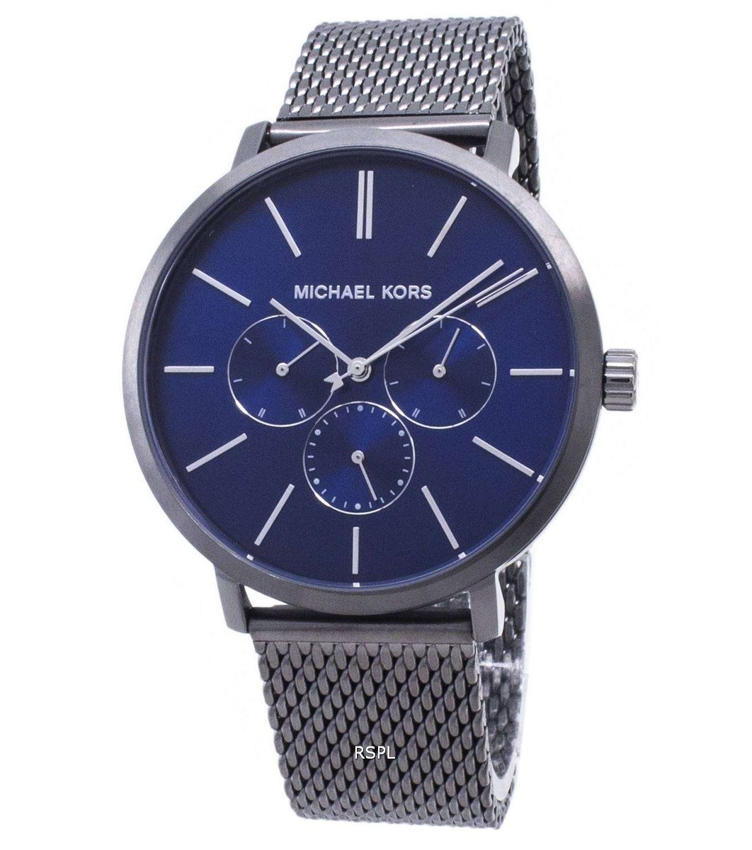 Ceas bărbătesc elegant, cu afișaj analog. Funcții de cronograf și un cadran cu trei cadrane rotunde mici. Are un lanț metalic și o coroană rotativă pe lateral.