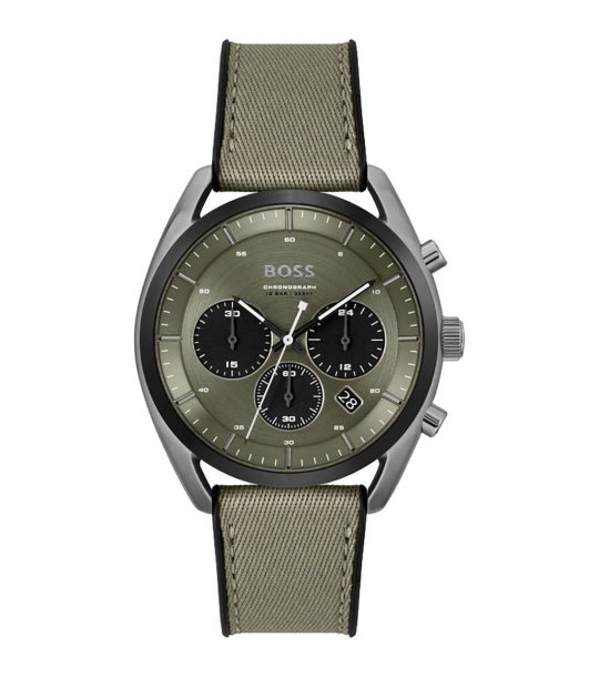 Ceas analogic cu mecanism cu cuarț și funcții cronograf.