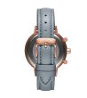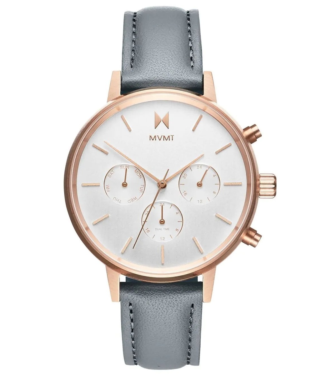 Ceas elegant de damă, cu mecanism cu cuarț și afișaj analogic. Dispune de trei cadrane suplimentare (cronograf) pentru diferite funcții.