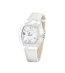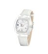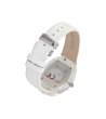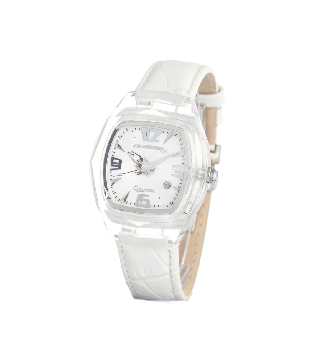 Ceas analogic cu design unic al carcasei. Curea din piele cu încuietoare standard. Afișajul are numere marcate clar și un indicator de dată.
