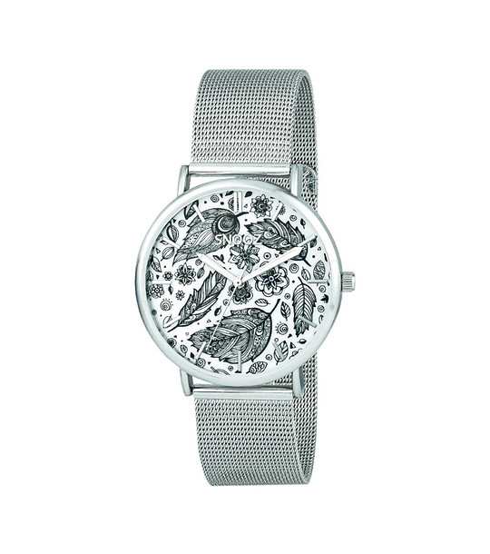 Un ceas cu afișaj analogic și un design interesant al cadranului.