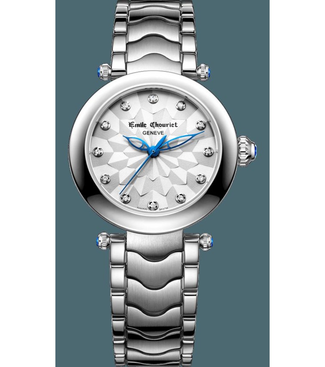 Аналогов кварцов часовник с елегантен дизайн и кръгъл циферблат.