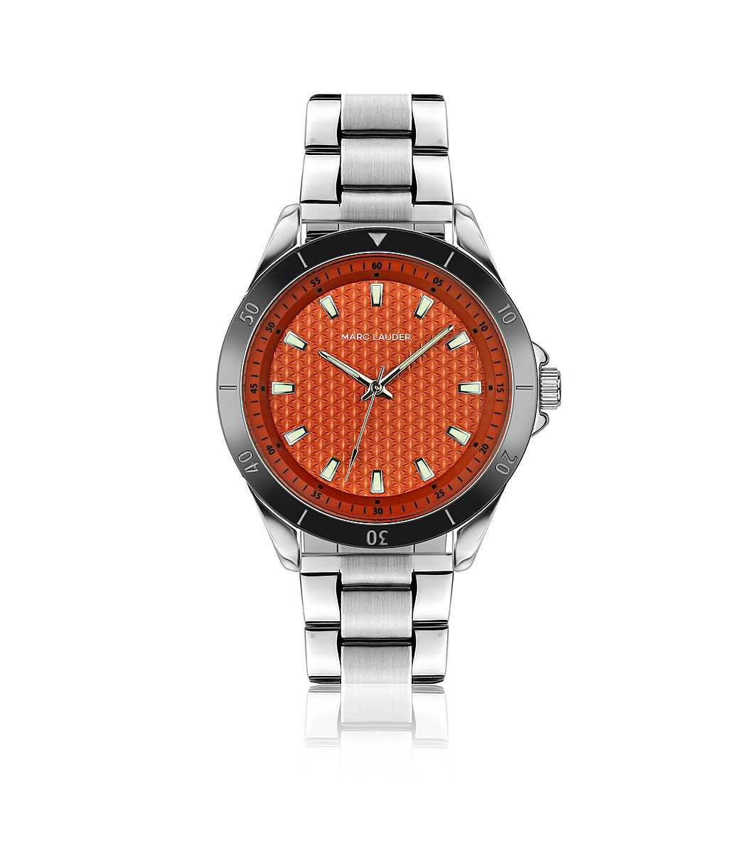 Marc Lauder Ceas de bărbați cu cadran portocaliu San Marino argintiu Sticlă minerală călită