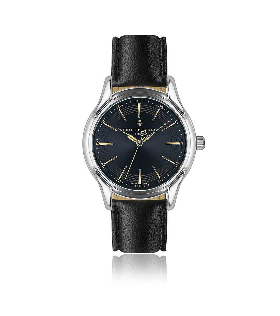 Philipp Blanc Ceas de bărbați cu curea din piele neagră Emmen Cadran analogic