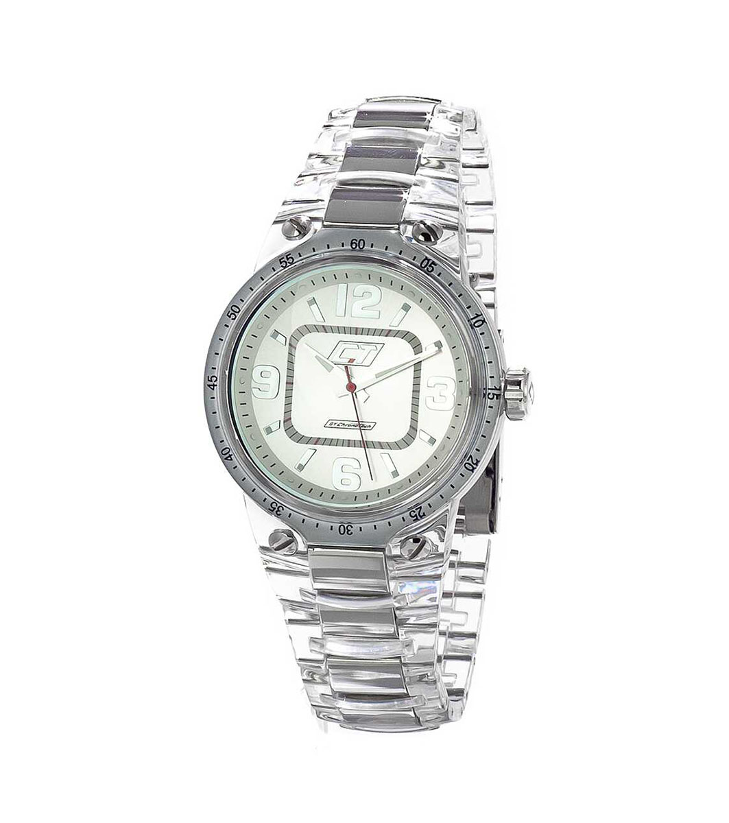 Chronotech Ceas de bărbați transparent cu margine argintie Afișaj analogic