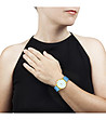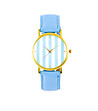 Ceas de damă albastru, alb și auriu cu dungi