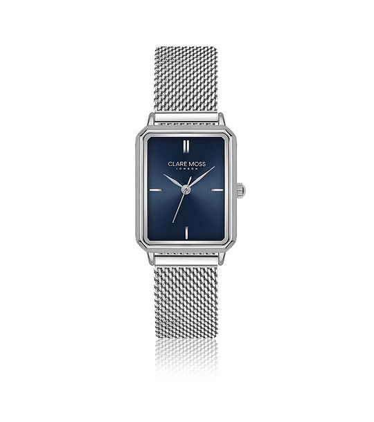 Clare Moss Ceas de damă argintiu cu cadran albastru Eva Afișaj analogic