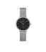 Ceas de damă argintiu cu cadran negru și pietre